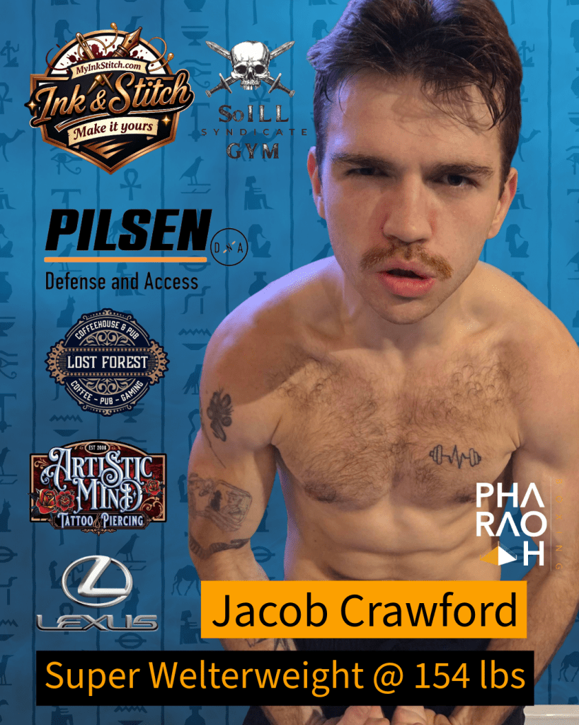 Crawford will be competing in the highly competitive Super Welterweight division at 154 pounds. Known for his conditioning and grit, he’ll be looking to impose his will under the bright lights. Joining him on the card is the heavy-hitting Tyson Beck, who will be tipping the scales in the Heavyweight division at 198 pounds. Together, they represent a resurgence of the fighting spirit in Southern Illinois.